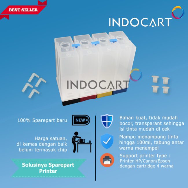 Mampu menampung tinta hingga 100ml, tabung antar warna menempel.